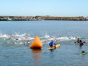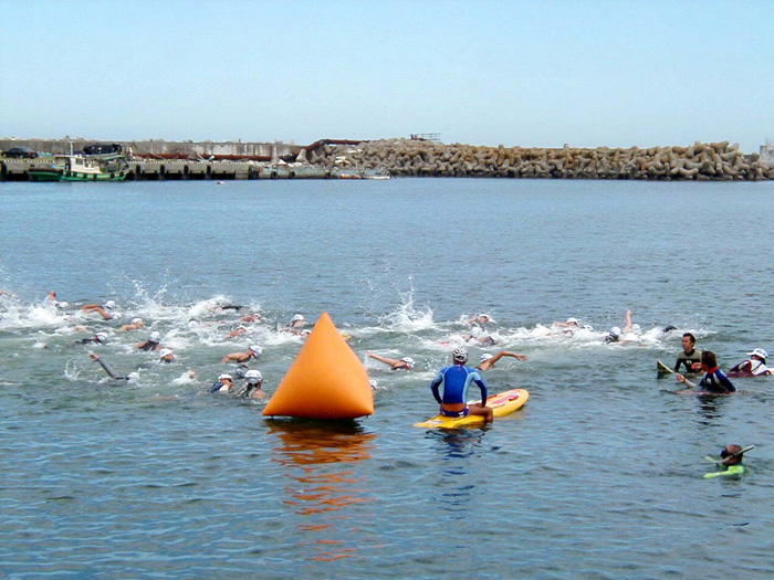 10分後にスタートするオリンピックタイプの選手達が、フローティングでスタートの合図を待っている。