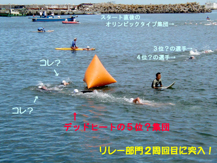 8時スタートのミドルタイプの(遅い)選手達が最後の力泳を見せていた。