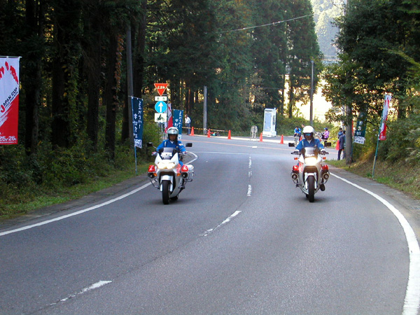 ▲ 先導の白バイ隊(一周目:萩の登り)