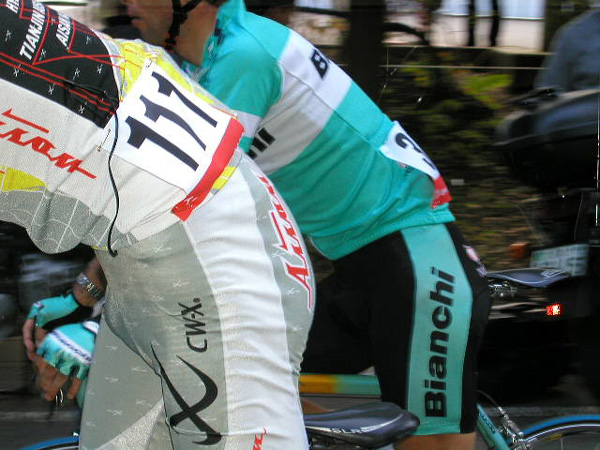 ▲ 111はアイサンの新保選手。向こうはウルリッッヒの所属するチーム・ビアンキの選手