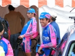 ▲ お疲れさまでしたのクイックステップの選手と監督(?)。かんとく〜、ハラ減ったぜ〜! ウルセ!!