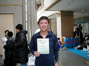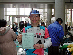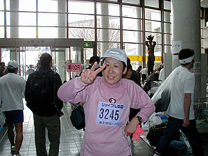 ↑ゴール後の私(タッキー)!前日の焼き肉パワーが効いたか1時間34分でゴール!やったー!幕張より速かったー!