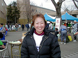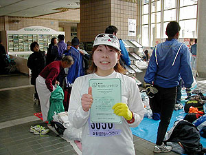 ↑ゴール後の村越さん。長い距離は苦手と言いながら、幕張のハーフに続き今大会へも出場するなど、