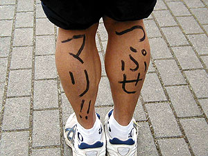 ↑スジオの足に書かれたライバル(?)へのメッセージ!つぷせ????