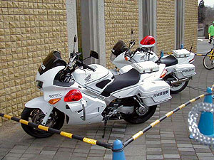 ↑茨城県警の先導の白バイ!