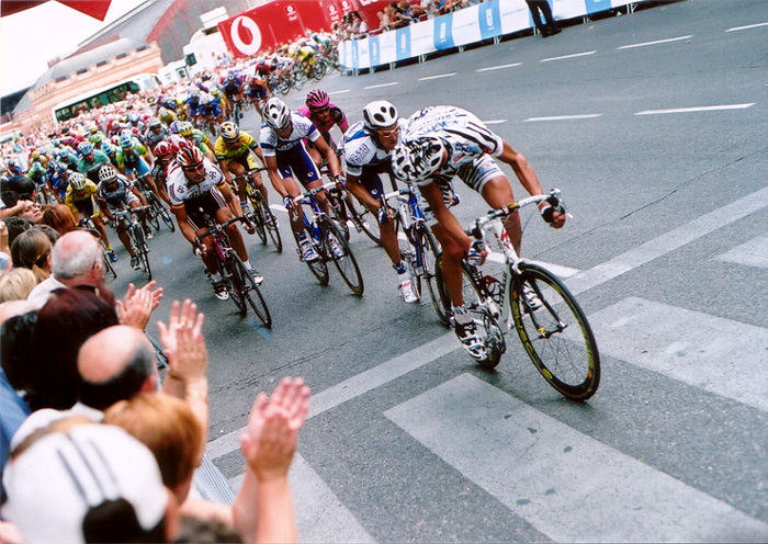 んに通行人を規制している。もう車は完全に通行止めになっていて、ツールドフランスの