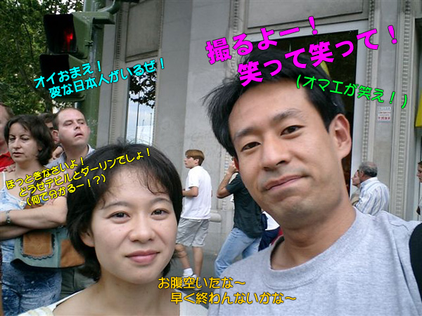 てこないのに、この観衆だけで、熱気が伝わってくる。ダンナは目の前にいた警官に、選