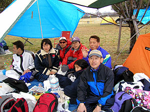 ↑テントの中で寒がる一同!スタート前のひとコマ!