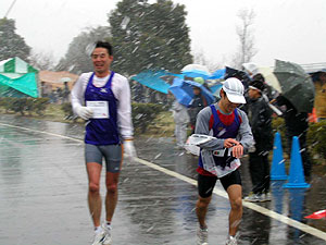 のぶちゃんご苦労さん。そして皆様お疲れ様でした。雪まで降って大分寒かったですがみなさんがんばりましたね、風邪など引かなかったでしょうか。私たちは帰りにチビ達とスパ温泉に入りやっとひと心地つきました、やはり大勢だと楽しいですね。また秋のエキデンもみんなで出たいなぁ。