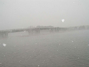 ↑大雪となり視界も悪くなってきた!水温より外気の方が冷えて来たため、
