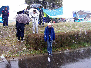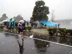 アフガンチャリティー参加のみなさん、番狂わせオーノー天気の中、お疲れ様でした。今年は世界に貢献したマイティの一員として胸を張って日夜練習にお励みください。でも風邪は大丈夫ですかぁ、みたいですね、あれだけ寒いと逆にひかないもんです。さて、私も今まで結構数多くの大会に参加しておりますが、今回のは記憶に残る「雪中行進大会」でした。ラン大会で「山田甲八」を思い出すとはね、あのオヤジのことじゃないっすよ。怪鳥欲求不満すみませんでしたぁ、たまには手抜きしてください。