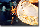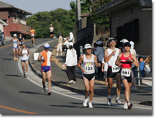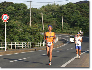 れた小柄な女性が、やけに軽々と走っているように見える。真平なコースなのに、え