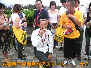 いた。Kappaキャップを被り、手にはカブーム(エナジージェル)を入れたフラスク