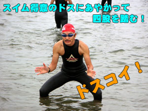 ワシもドス鯉にあやかろうと、四股を踏んで海に飛び込んだ。