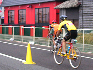 スタートして暫くはゆっくり進む。途中で前方の選手が左に曲がって行く。