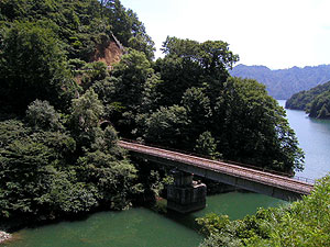 ↑田子倉ダムから峠越えの道中、長いトンネルの途中でちょっとだけ地上に顔を出す会津只見線が見える!