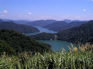 ↑田子倉ダムの遠景!この上流の奥只見ダムとともに、只見川系水力発電の核を成す!