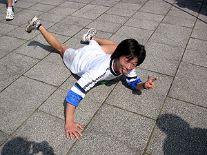 ↑ブイ!(根っからの芸人、何かやらずにゃいられないアポ石井)